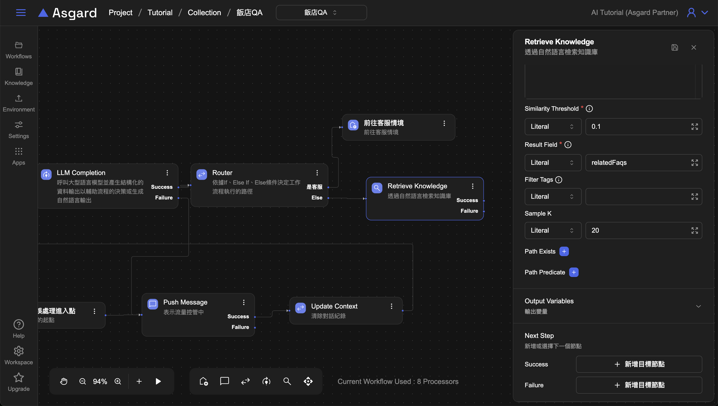 - Optional: 可以將 Processor 的 Description 改成容易識別的描述幫助工作流程的編排易讀性,例如改成「追問」