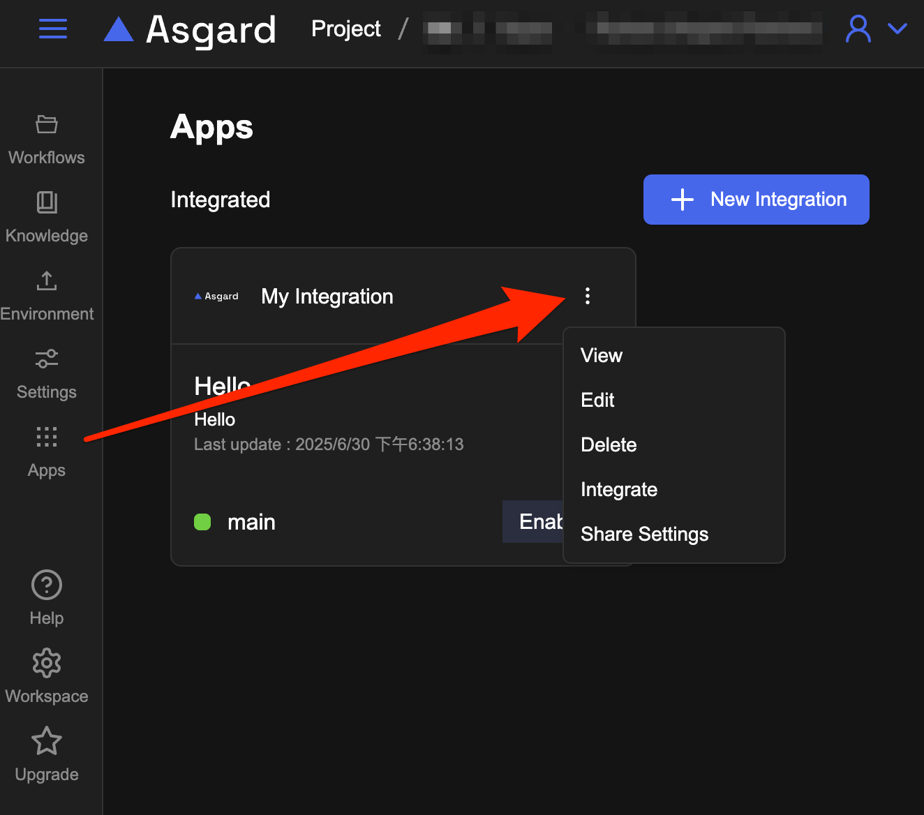 3. 找到已設定完成、狀態為 Integrated 的應用,點擊右上角的「⋯」選單。
