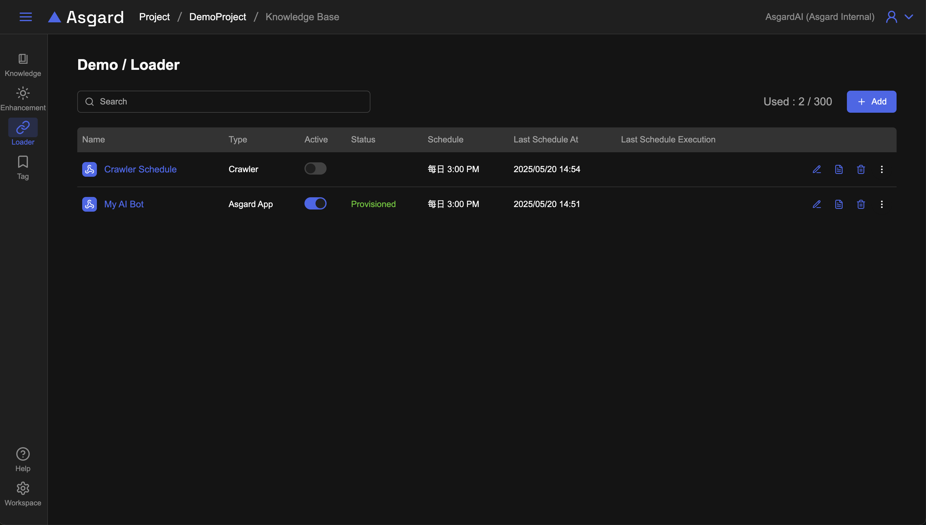 Asgard 提供了自動化的擷取知識載入(Loader)的功能,能夠讓您一次設定好資料的來源與排程,後續皆交由系統自動化幫您更載入即可,省時有效率。