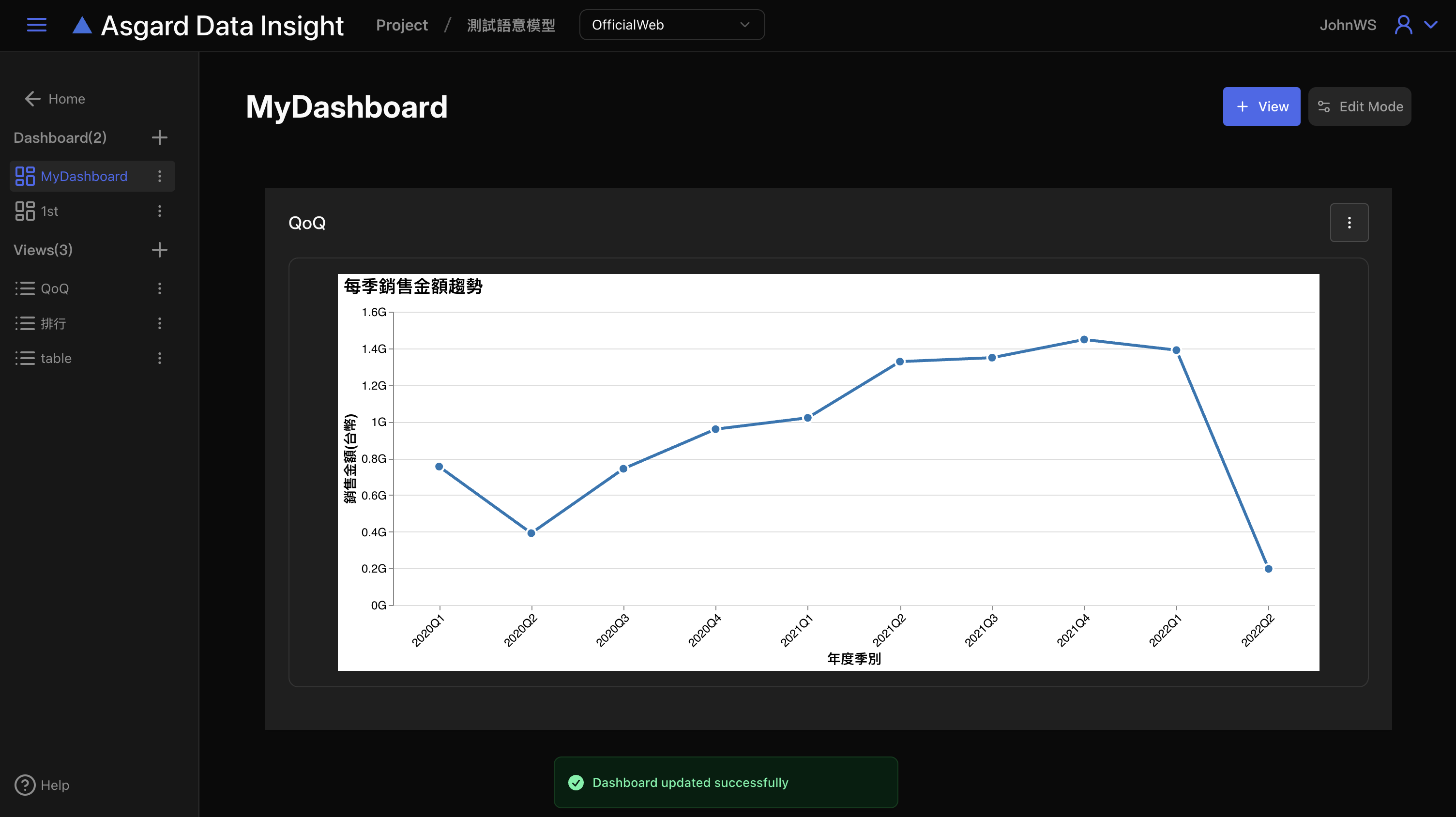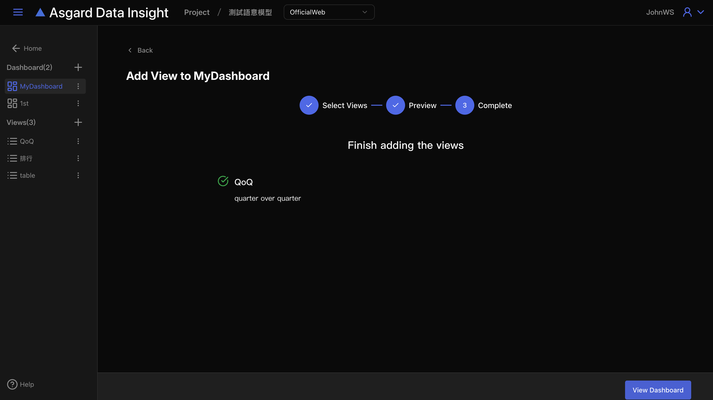 點擊「View Dashboard」來檢視完成的儀表板。