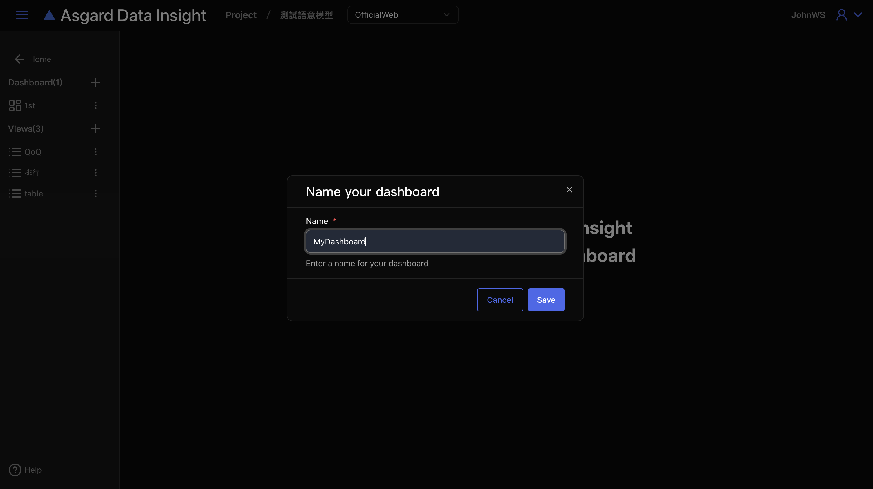 點擊「Add new dashboard」並為新的儀表板命名儲存即可。