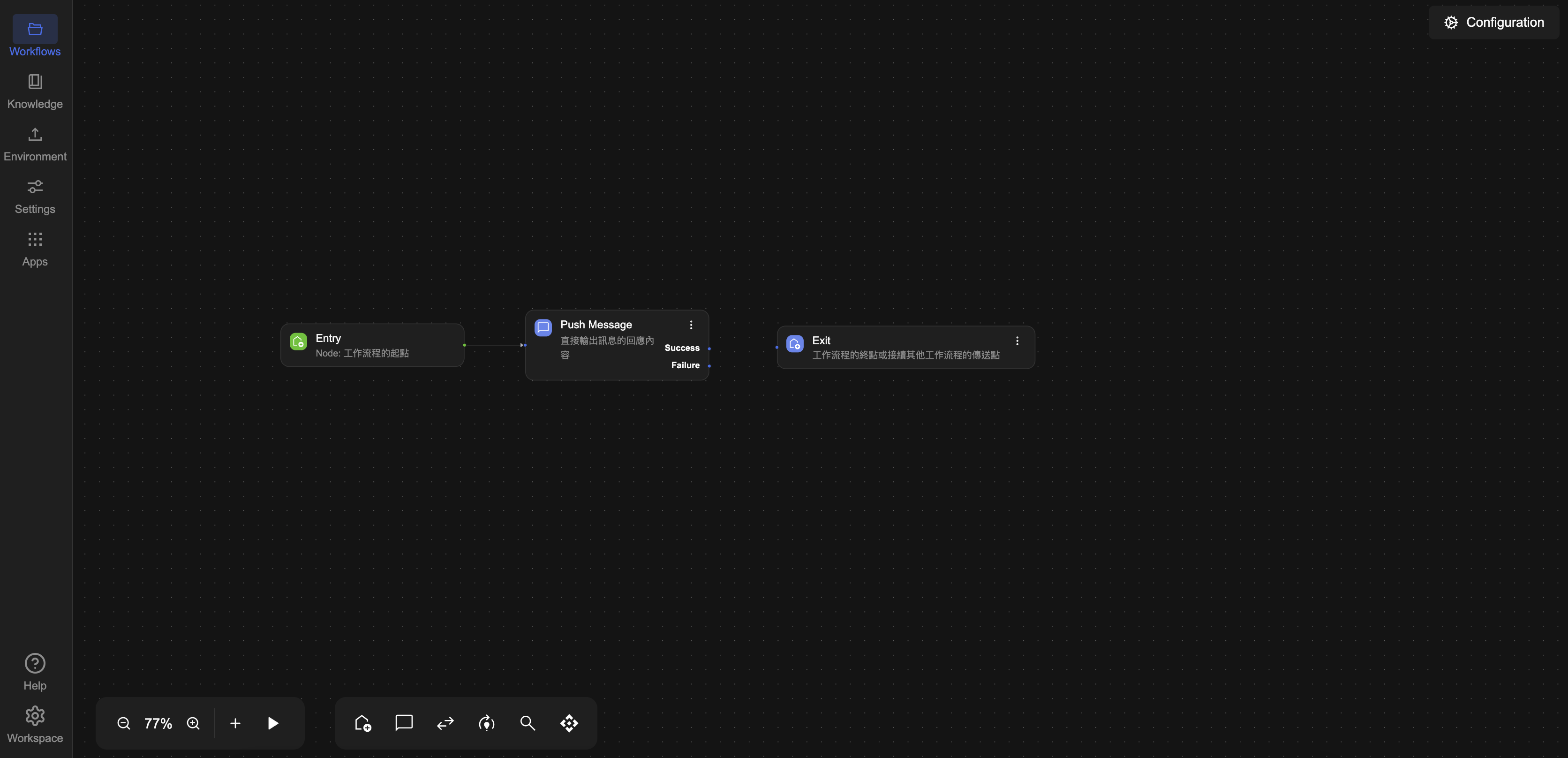 • 點選 Exit 節點Push Message 節點之間的連接線,按下鍵盤的 DeleteBackspace 鍵進行刪除。
