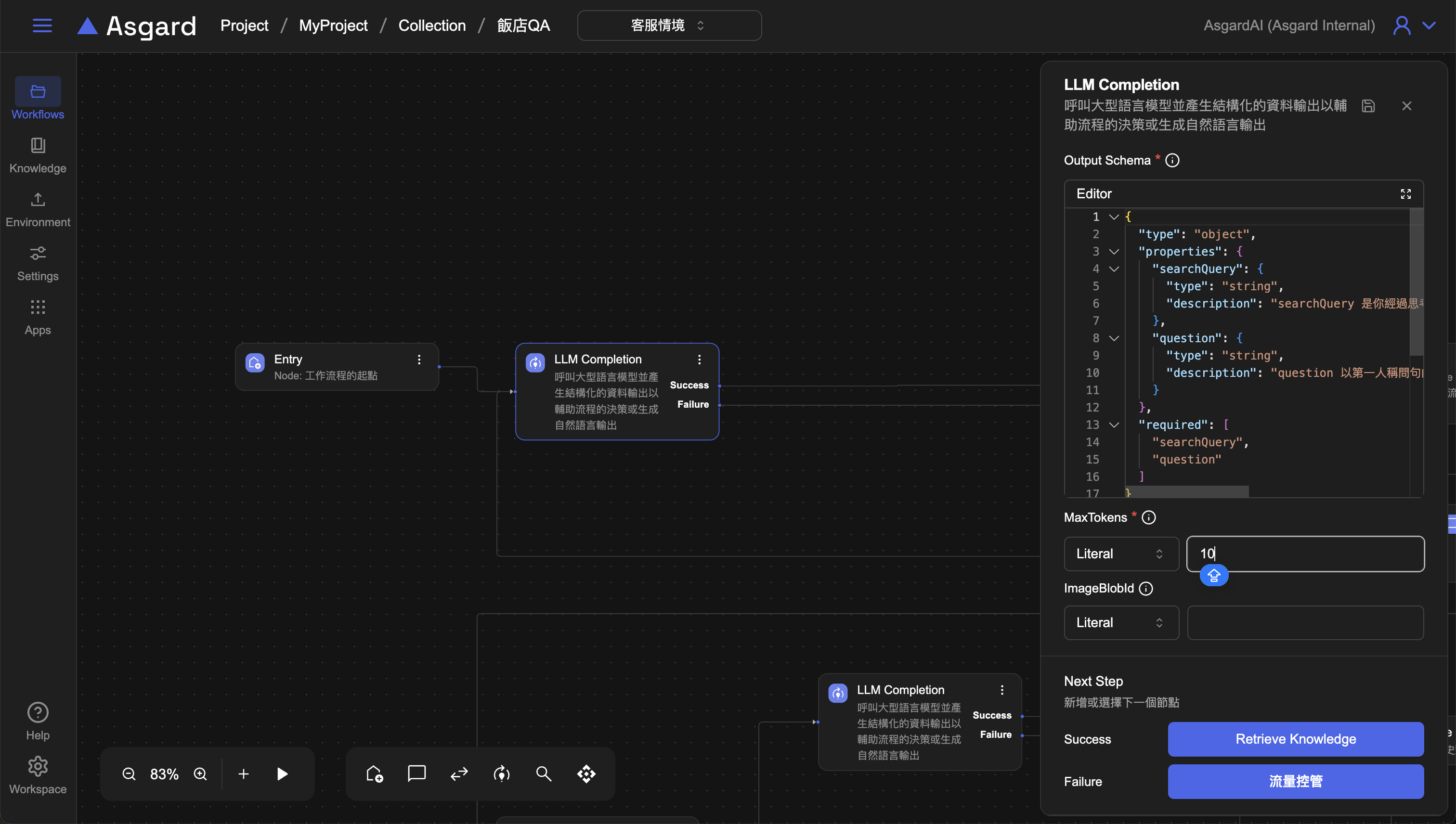 將 LLM Completion Processor 的 MaxTokens 調整回去4096 儲存設定後預覽。