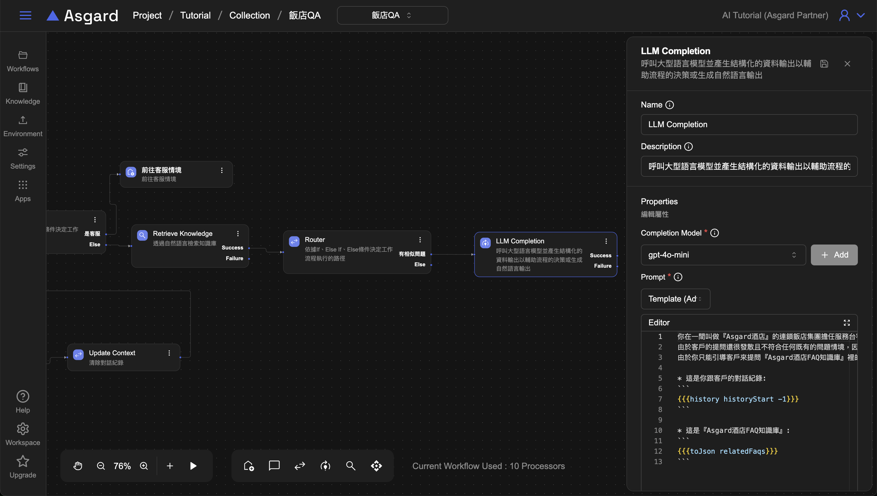 • Optional: 可以將 Processor 的 Description 改成容易識別的描述幫助工作流程的編排易讀性,例如改成「產生固定的追問問題與選項」