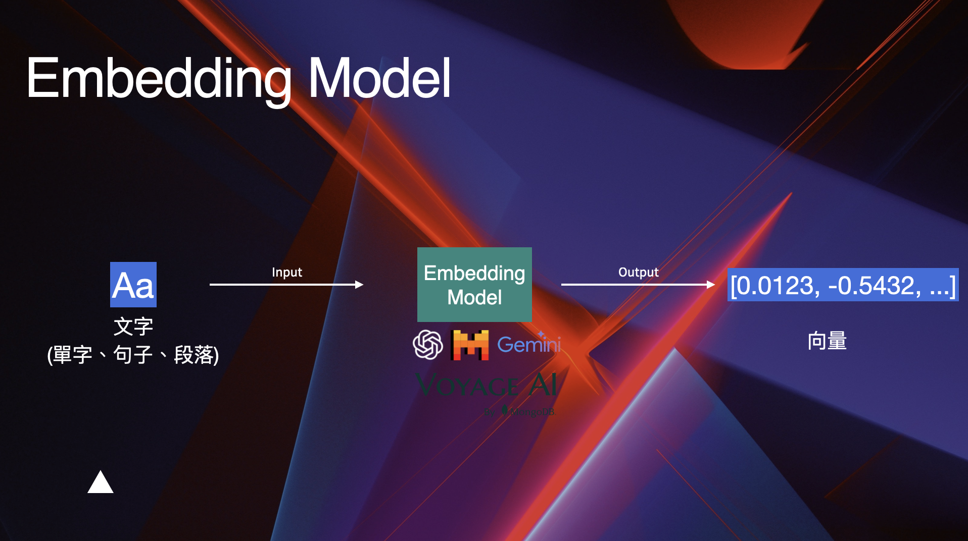 如何使用 Embedding Model ?參考 自然語言查詢AI Bot - Embedding 向量搜尋