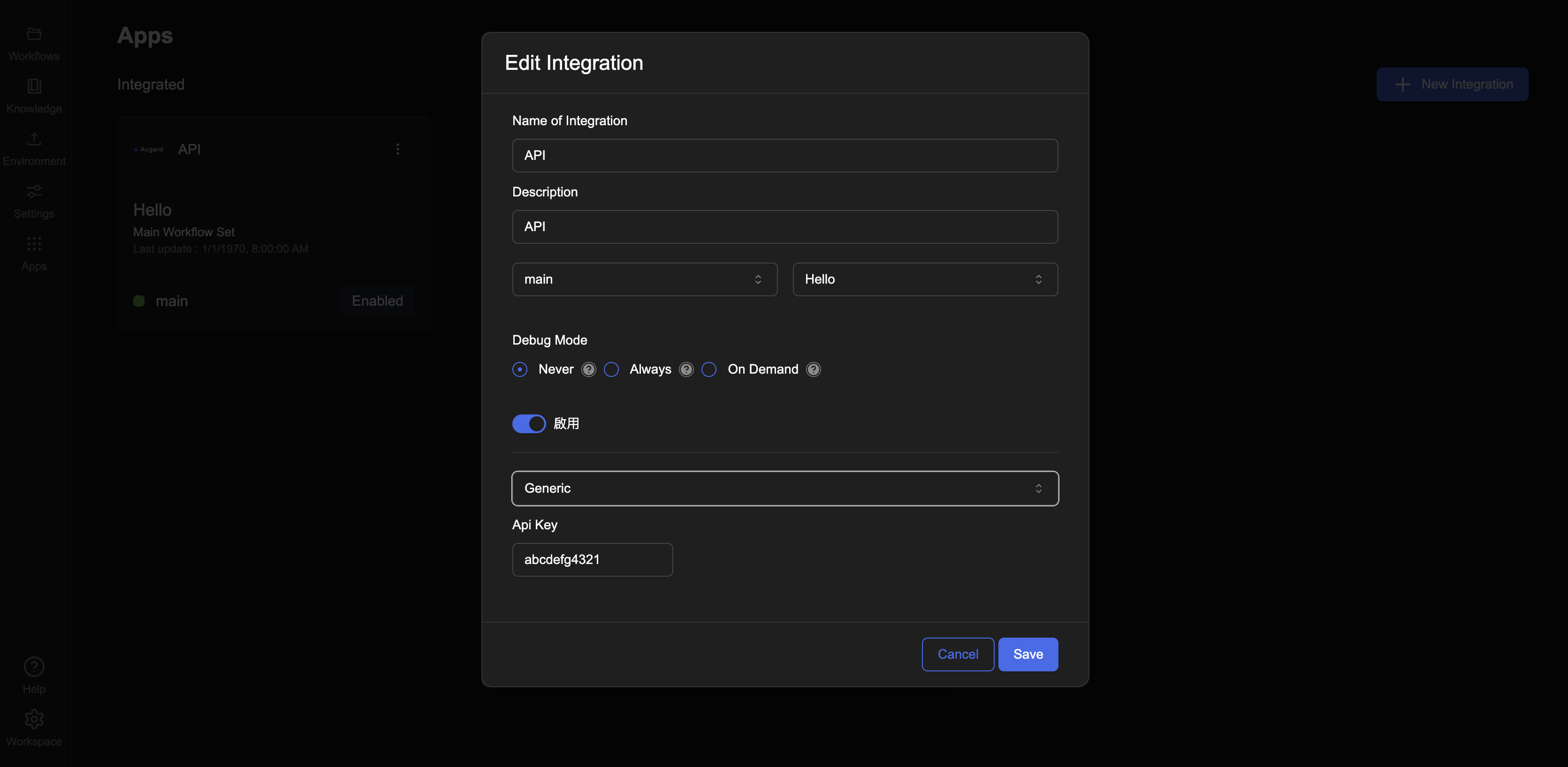 • 狀態:請確認 Integration 為「啟用中(Enabled)」