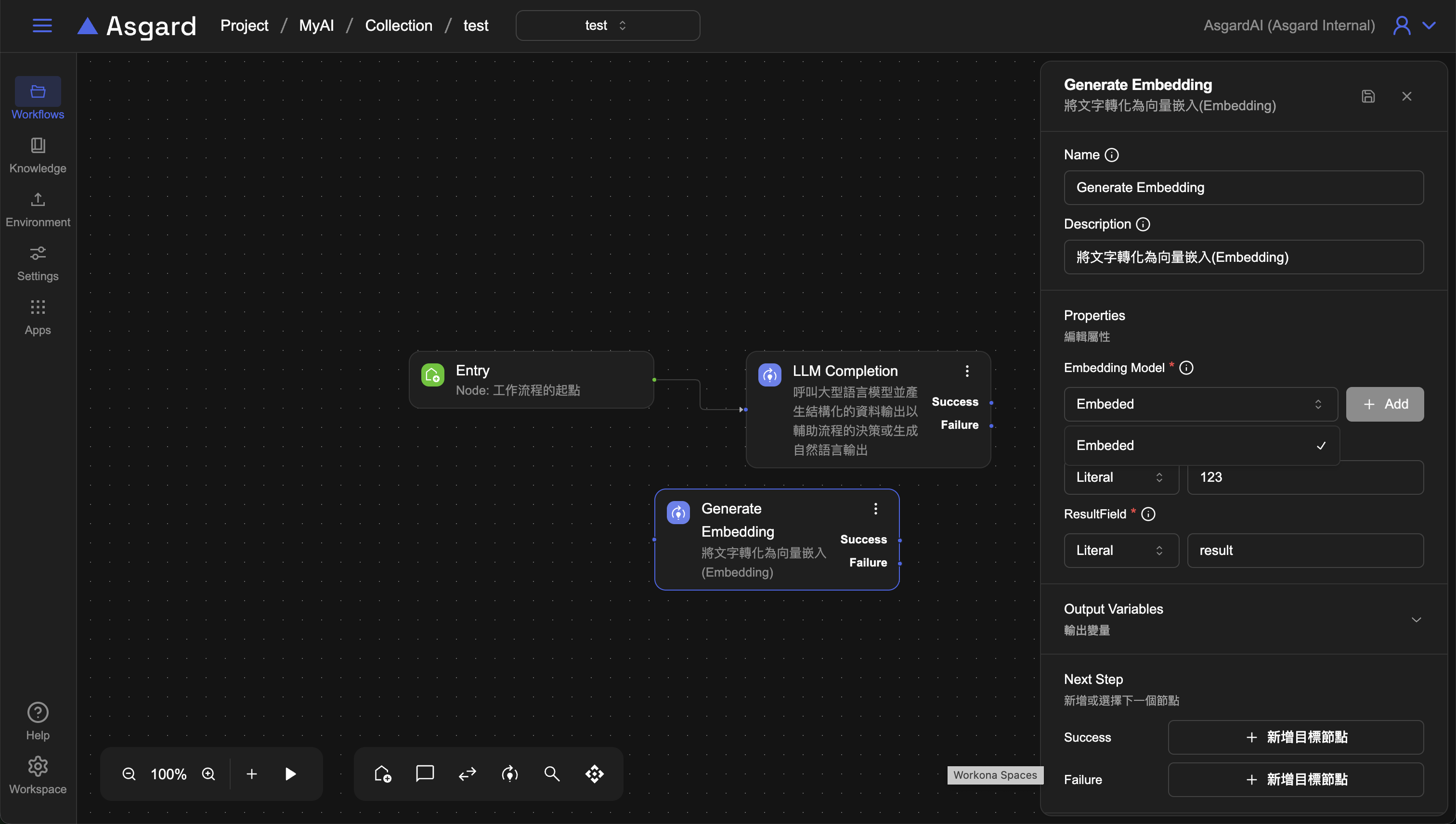 新增的 Embedding Model 可以在對應的 Generate Embedding Processor 下拉式選單裡選擇,若未先設定的話,也可以從 Processor 新增 model。