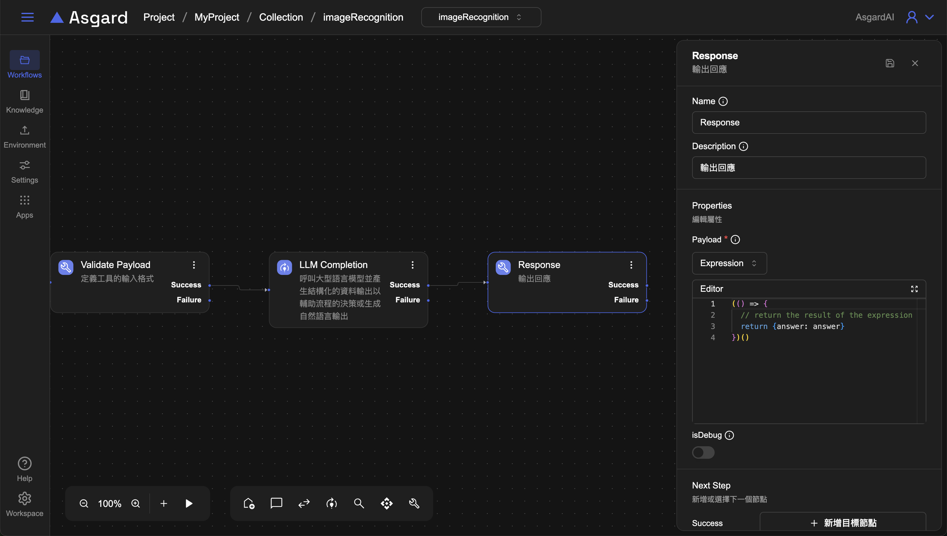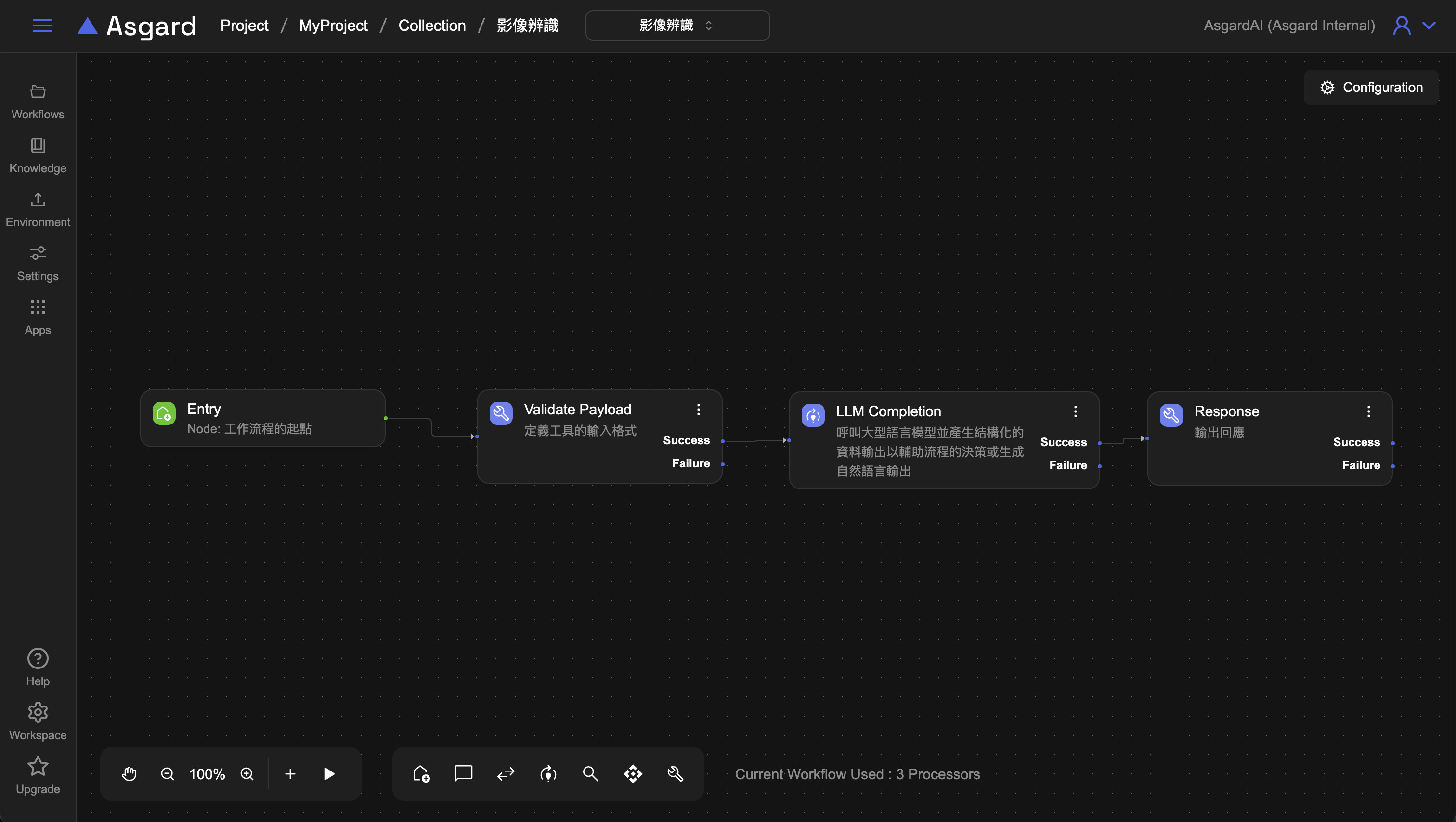 此範例會讓用戶上傳一張圖片,並讓 AI 依據用戶的問題加上圖片去回答。整個範例會建立 3 個 Processor 來完成辨識影像的流程,最後藉由預覽來驗證功能。