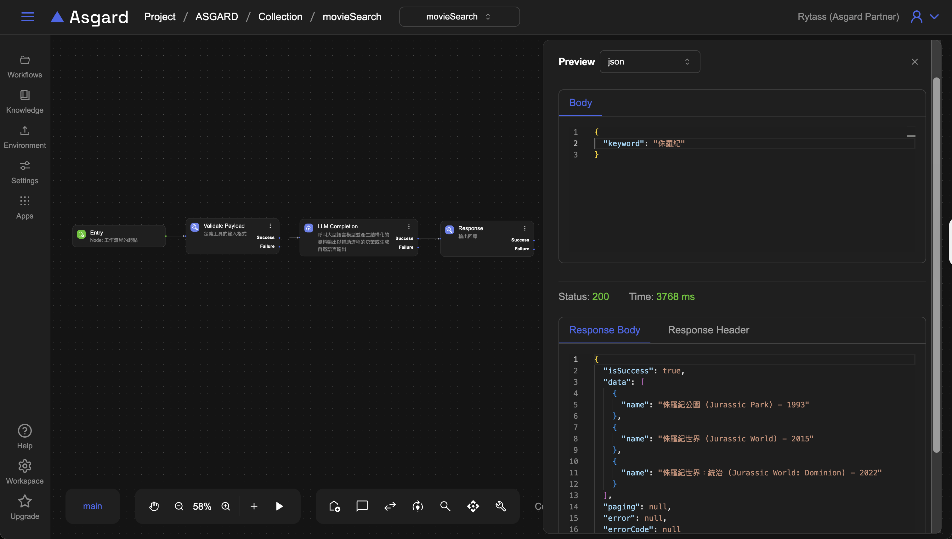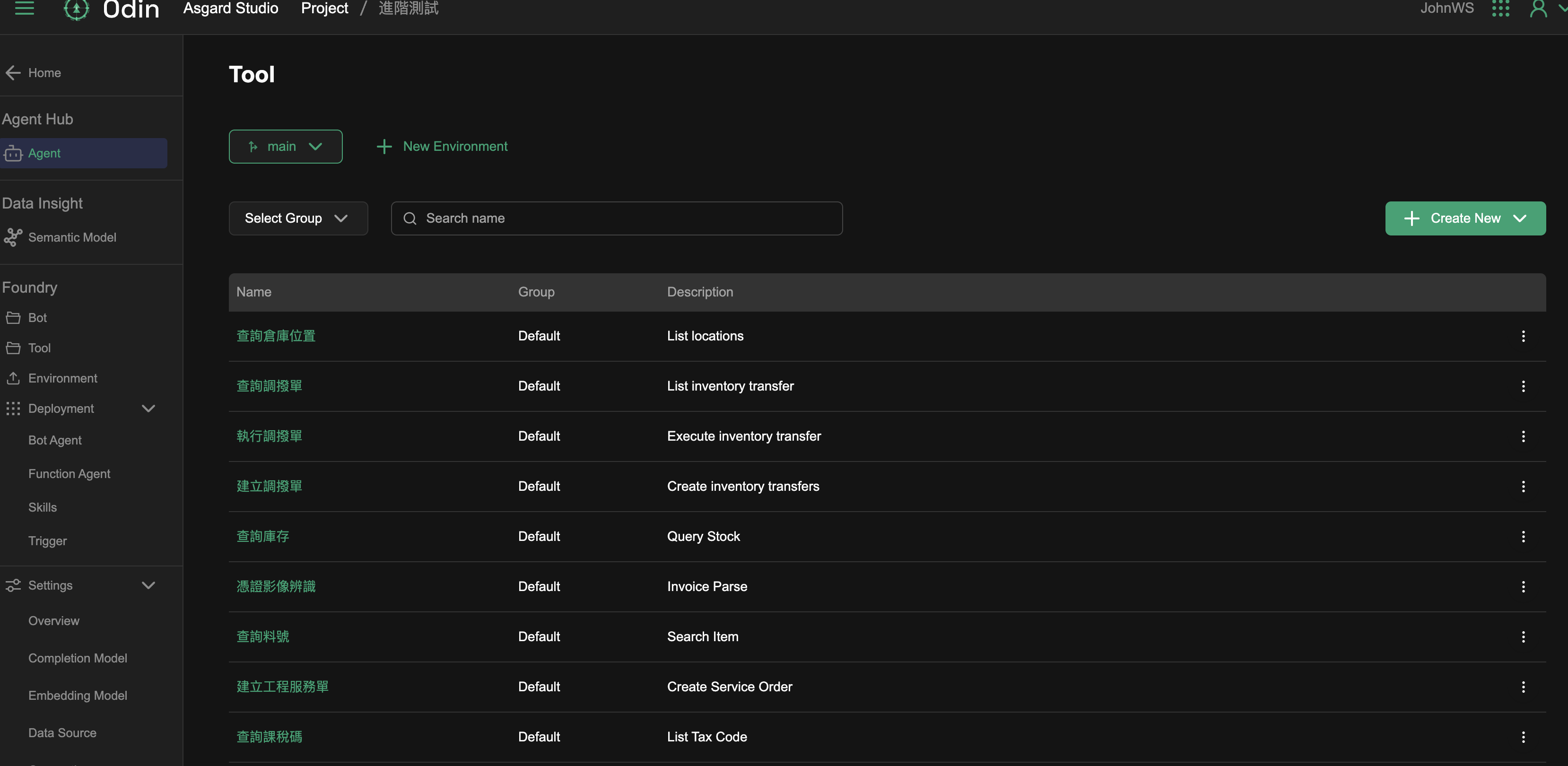 Toolsets 讓您的AI工作流程可以調用多項工具,當您問問題時,AI 會自動選擇最適合的工具來回答。在Asgard使用Toolsets時,能將設計完成的Automation Tool重複使用,將AI進化成Agentic AI,而能進行規劃步驟、呼叫工具、執行 API、循環完成任務等,讓AI具備「自主決策」與「執行行動」,而不只是被動地回答。