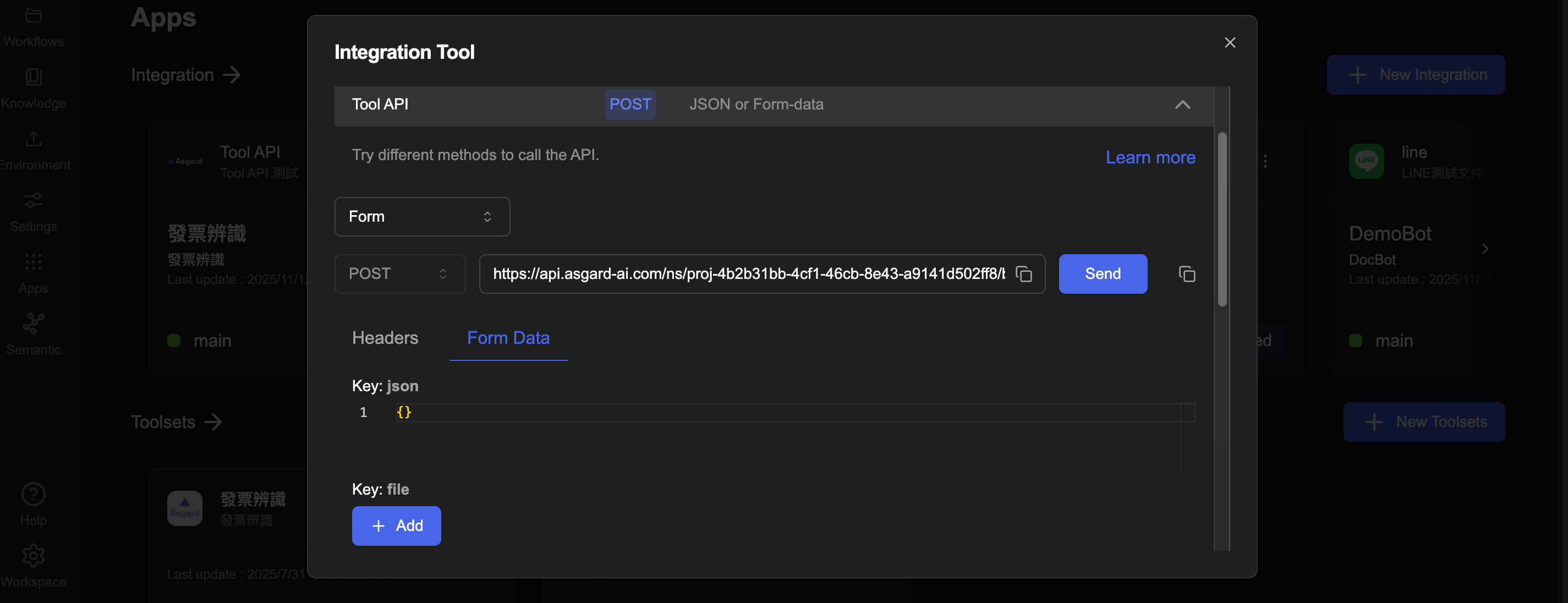 Asgard 的 Integration Tool 讓您直接在瀏覽器測試 Asgard API,不用再額外開 Postman。