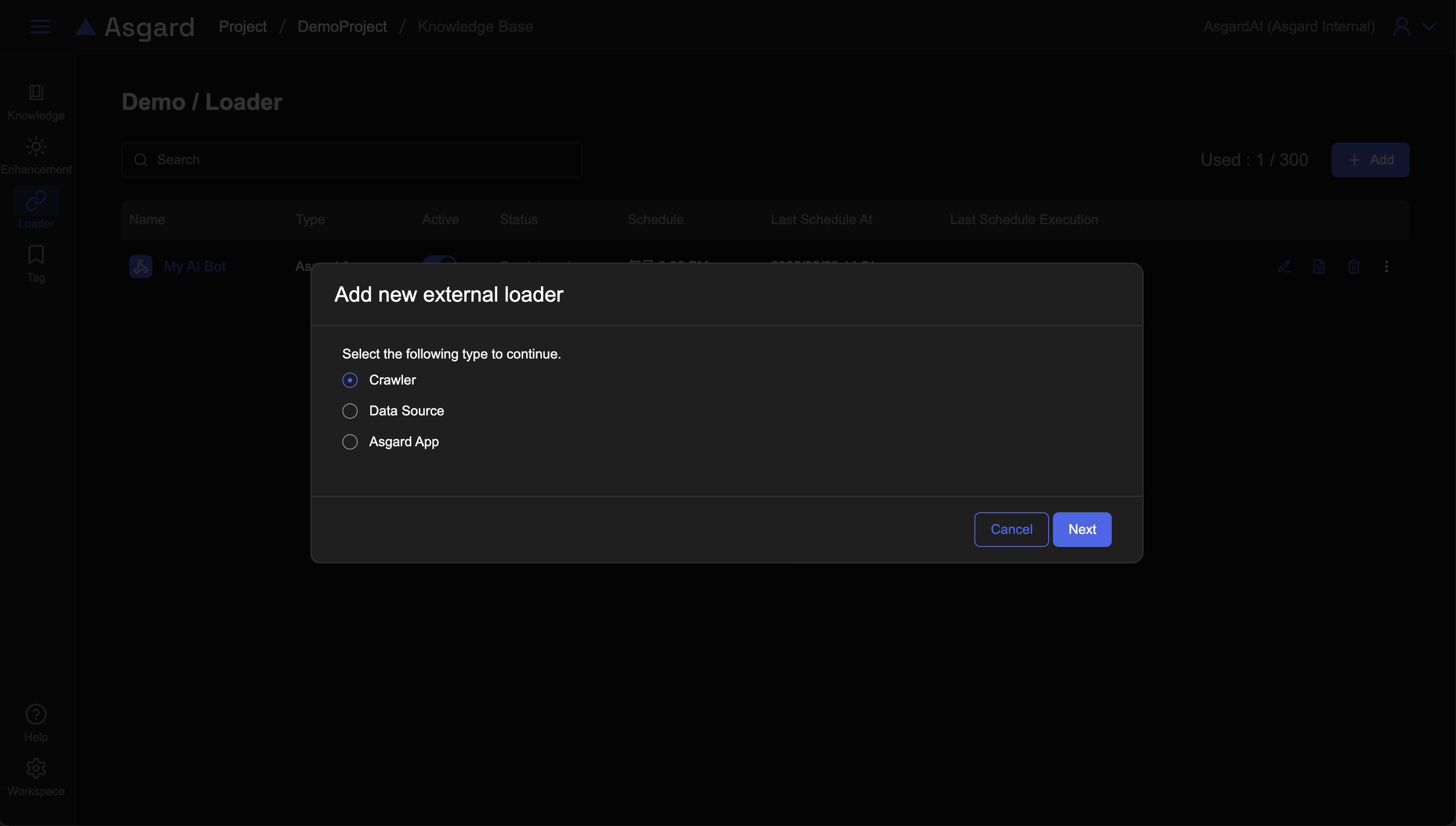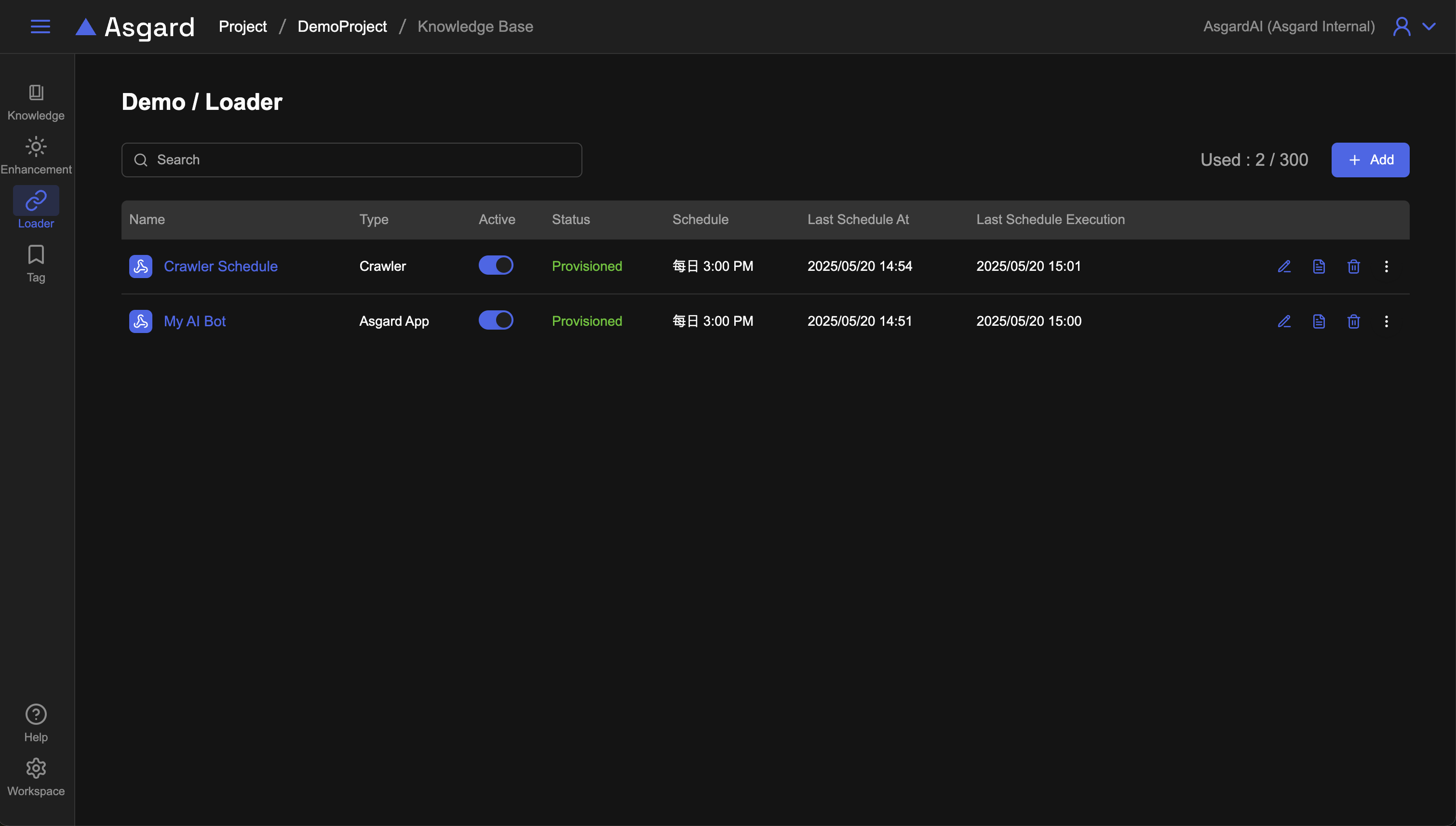Asgard 提供了自動化的擷取知識載入(Loader)的功能,能夠讓您一次設定好資料的來源與排程,後續皆交由系統自動化幫您更載入即可,省時有效率。
