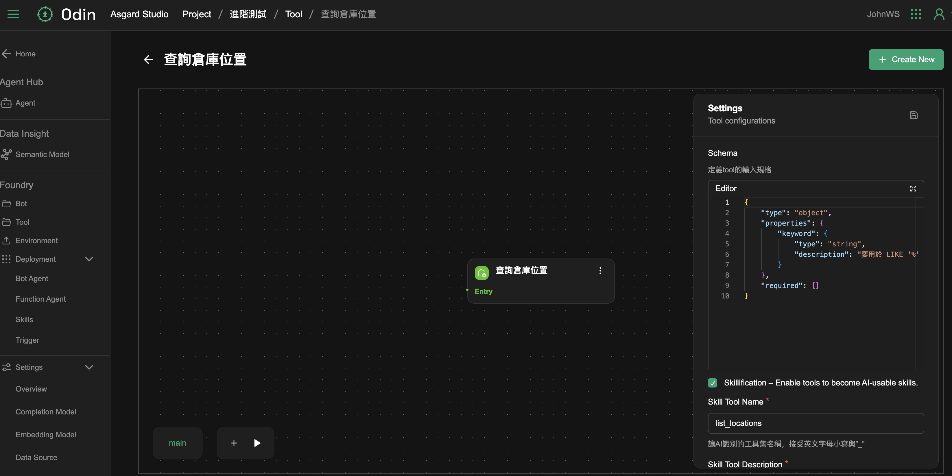 Automation Tool 是 Asgard 的自動化工具,能夠快速驗證工作流程,立即測試生成的 Endpoint。點擊 Automation Tool 的 Foundry 進入並繼續新增 workflow。