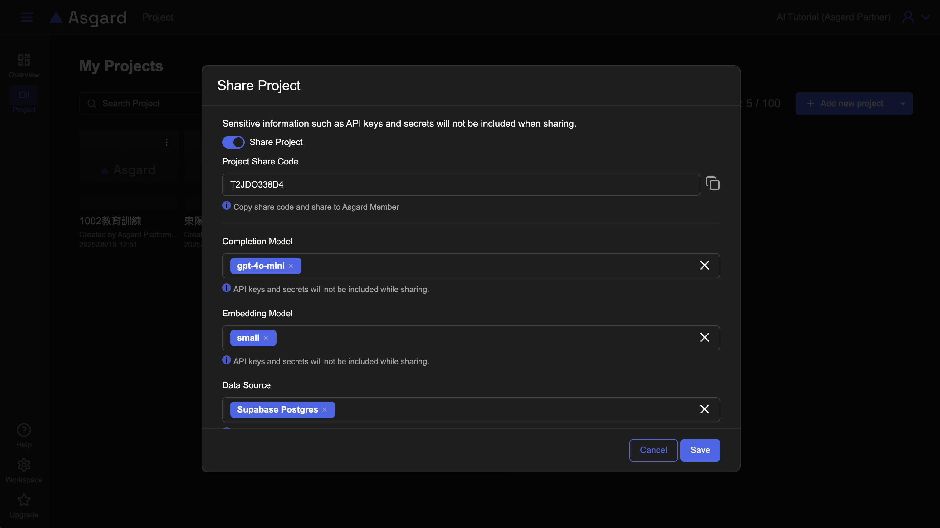 Asgard 提供了快速分享 Project 的功能,讓 Project 能夠跨 Workspace 分享,提高效率。