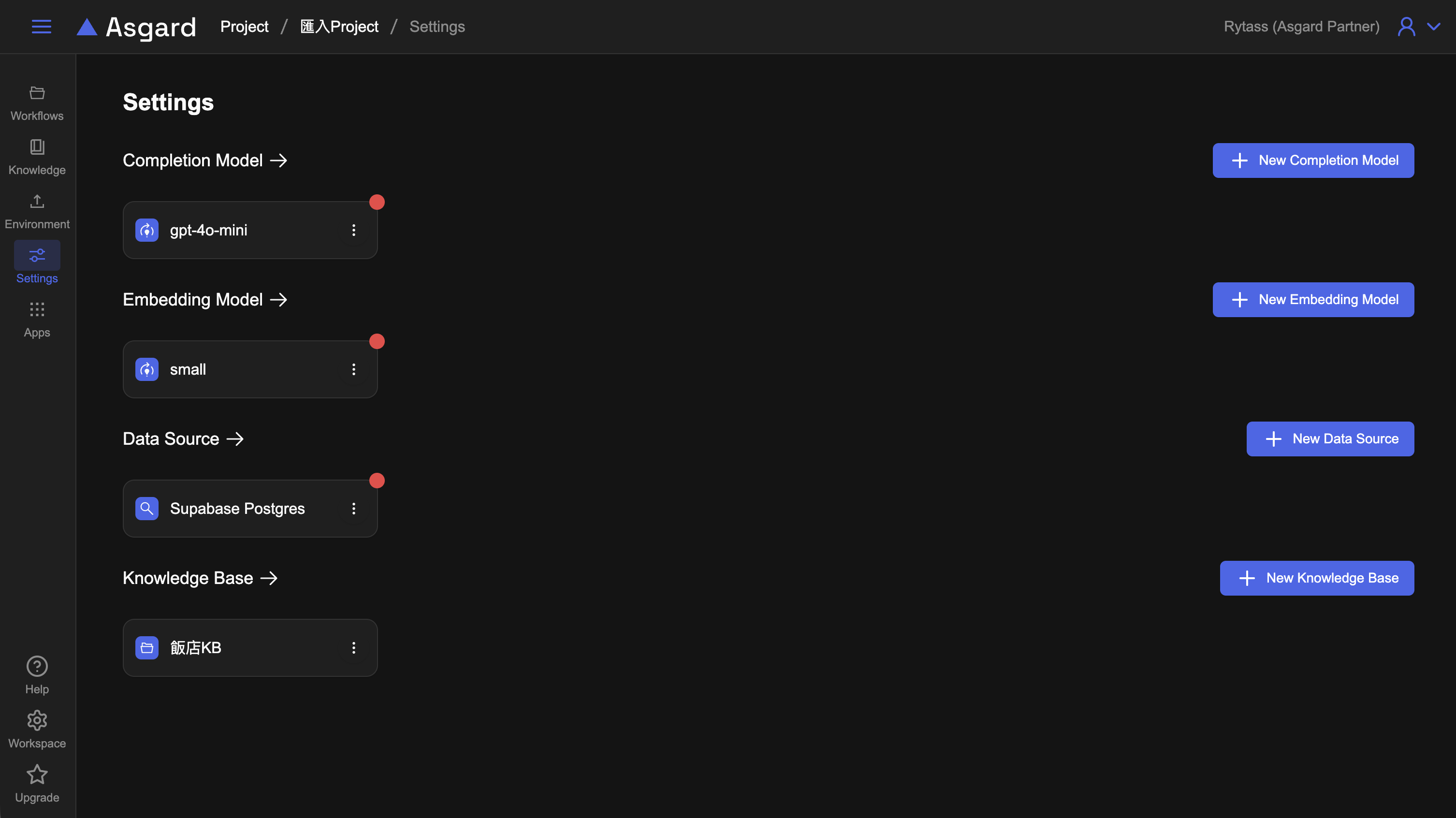 Completion Model除了 API Key 之外皆會分享,您可以在此選擇欲分享的 Model 或 Data Source,預設全部勾選。